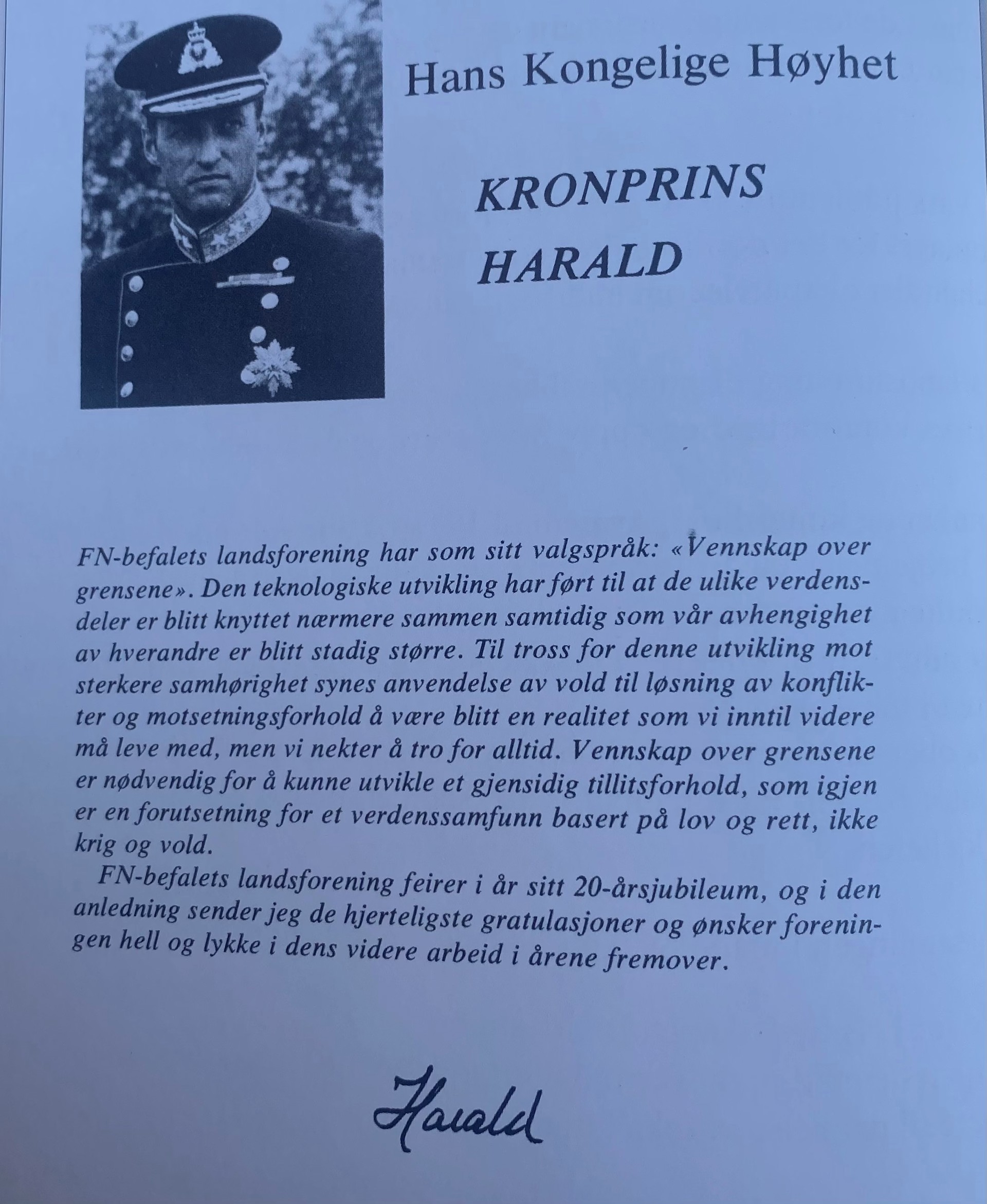 Ved FNBLFs 20-årsjubileum i 1980 hadde foreningen 500 medlemmer. Dagen ble feiret med jubileumsbankett i Krigsskolens festlokaler i Tollbugata 10. Kronprins Harald, utenriksminister Knut Frydenlund og forsvarsminister Sverre Hamre sendte alle hilsener til jubilanten gjennom det felles nordiske FN-bladet «The Nordic Blue Beret».