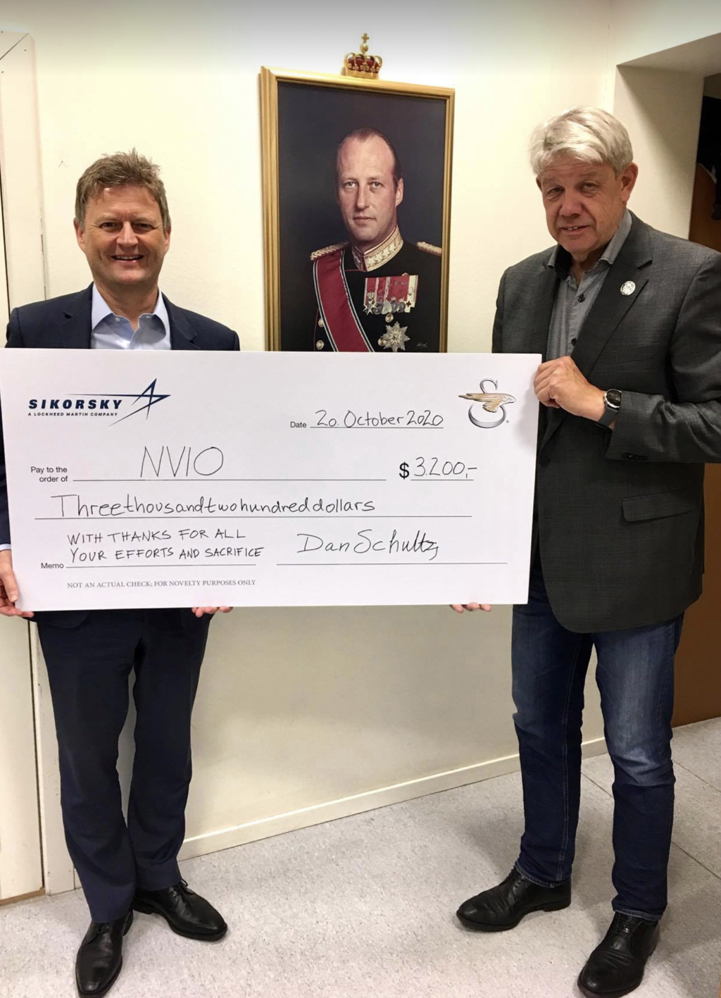 . Dere vet hvor mye Sikorsky setter pris på veteraner og deres innsats. Selv i et spesielt år som dette, ønsket det amerikanske hovedkontoret å fortsette med bidrag til NVIO lokalt og sentralt, forteller Arne Martin Gilberg, direktør forretningsutvikling i Aircontact Group