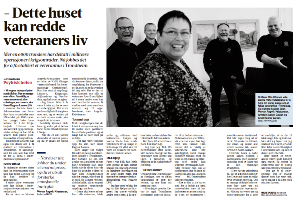 NVIO Trøndelags leder Morten Angvik-Kristiansen har sammen med ildsjelene Svenn Dahle, Steinar Brun, Arnstein Aasen Galåen og Ernst Ragnar Larsen nedsatt et interimstyre for «Veteranhuset Trøndelag». De jobber nå hardt for å samle alle veteraner under samme tak og samme visjon.